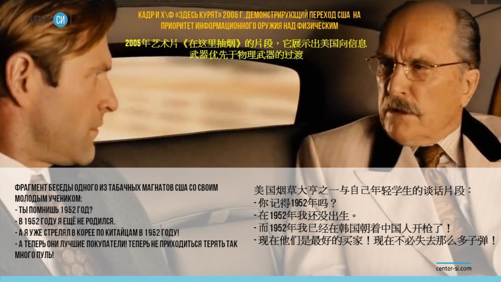 Захват информационного пространства и насаждение западных ценностей происходит поэтапно. Массовый вброс голливудских фильмов, далее, контроль сети кинотеатров и проката, насаждение форматов, затем создание по их калькам как бы «отечественного кино».