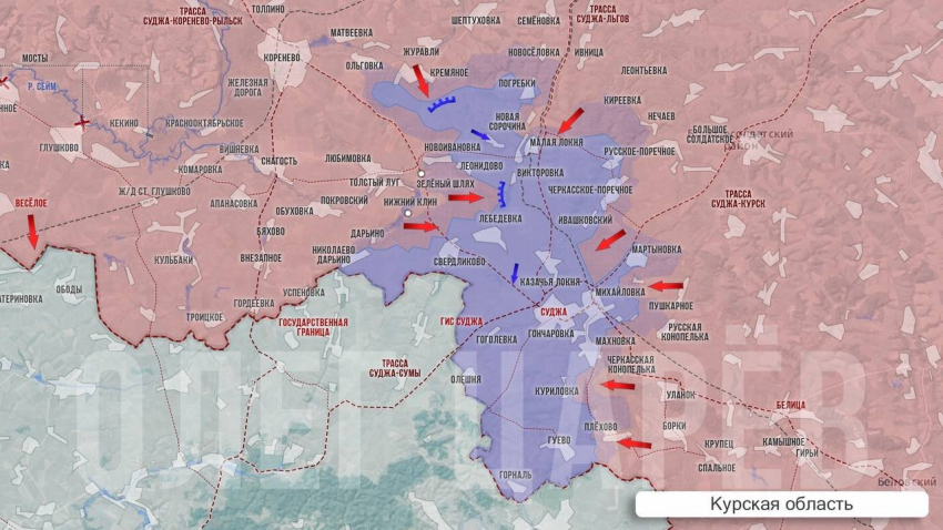 Выше есть локальное продвижение наших в районе Погребков, что между Кремяным и трассой Суджа-Льгов. Из района Новоивановки, Леонидова, Викторовки об изменениях не сообщалось.