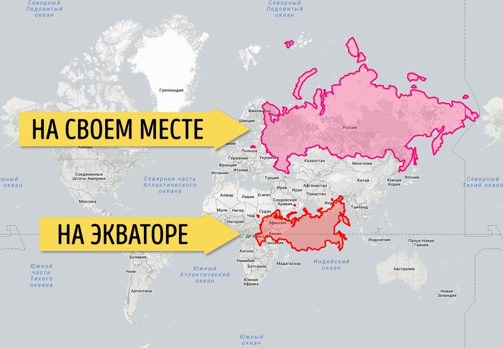 Россия — не только самая большая страна, но и самая северная. Именно поэтому на карте она выглядит просто исполином, который даже больше, чем многие континенты.