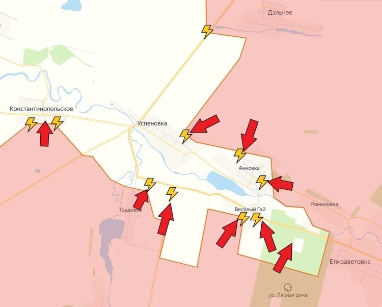 На Успеновском направлении идут бои за Анновку и Весёлый Гай. Некоторые источники сообщают, что враг начал вывод своих подразделений из кармана, опасаясь окружения. Однако на текущий момент эта информация не подтверждена. Продолжаются ожесточённые бои и на северо-восточных окраинах Успеновки. Враг пытается выдавить наших бойцов, чтобы не допустить создания котла, сообщает PulsePen.