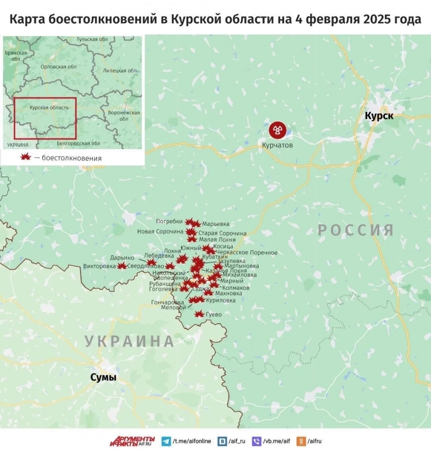 Свежая карта боевых действий в Курской области. Данные на сегодняшний день, 04.02.2025