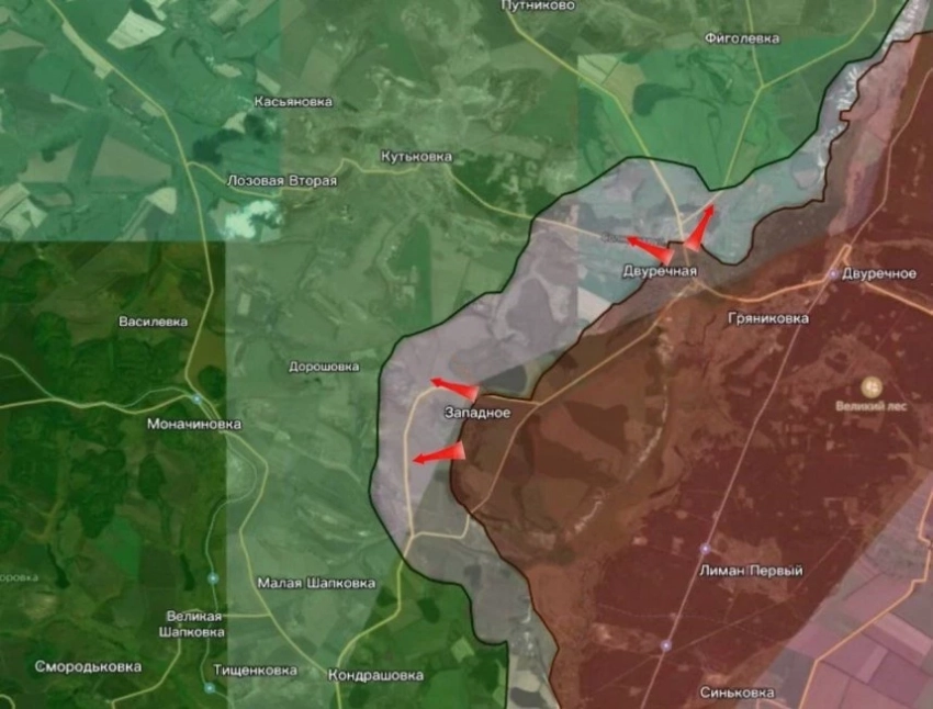 На Купянском направлении из района Западного наши продвигаются к Моначиновке и селу Малая Шапковка.