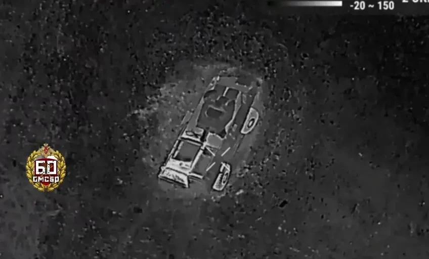 Российский БПЛА обнаружил M1117 и готов сбрасывать на него боеприпас, март 2024 г. Фото Telegram / Lost Armour
