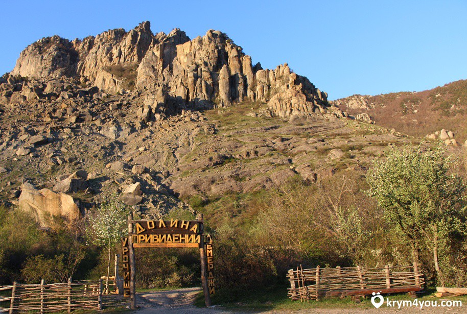 «Демерджи» в переводе означает «кузнец»: давным-давно здесь жил маг, ковавший огненные мечи, но популярностью урочище близ Алушты обязано не только ему. Во-первых, рельефу — затейливым скалам, выточенным ветрами и землетрясениями. Во-вторых, Леониду Гайдаю и «Кавказской пленнице»: камень, на котором Варлей отплясывала под песенку про медведей — едва ли не главный туристический магнит.