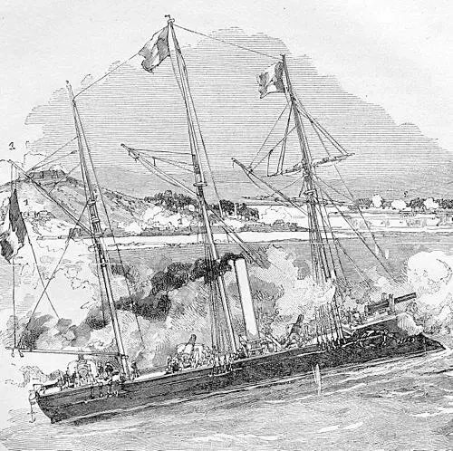 В состав флотилии Курбе вошли корабли не старые, но... колониальные. Флагманом стал «Байард» — барбетный броненосец второго класса, уменьшенная версия первоклассных броненосцев типа «Адмирал Дюпре», построенная для службы в колониях. Его главный калибр был представлен четырьмя 240-мм орудиями в двух бронированных барбетах — в носу и в корме, толщина брони не превышала 250 мм. «Атланта» — броненосный корвет с орудиями главного калибра 194-мм (да, у французов всё не как у людей, в том числе калибры корабельной артиллерии!). «Шаторено», самый старый из всех, — небронированный паровой корвет, построенный по проекту 1850 года, вооружённый 140-мм пушками. Для европейских вод всё это выглядело слабовато, но для Вьетнама — хватало. Помимо основных сил в распоряжении Курбе были вооружённый транспорт «Драк» и канонерки «Линкс» и «Випер». Транспорт «Аннамит» нёс десант из 600 морпехов и 100 местных стрелков.