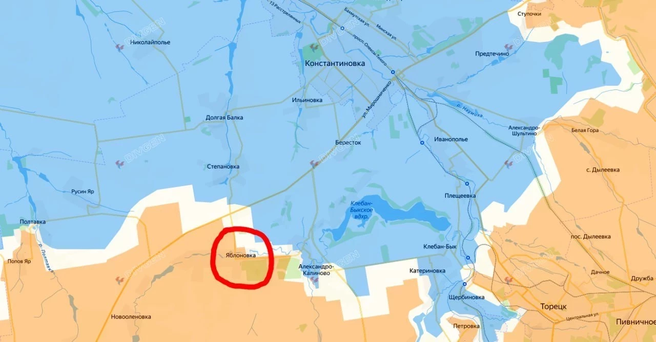 На Константиновском направлении село Яблоновка полностью перешло под наш контроль