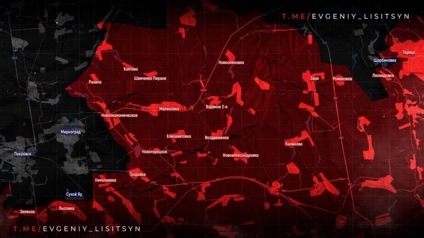 На Покровском направлении освобождено Зверево, идёт штурм Леонтовичей. ВС РФ также продвигаются в районе Новоэкономического и шахты «Капитальная». ДРГ фиксируются в Покровске и у Мирнограда.