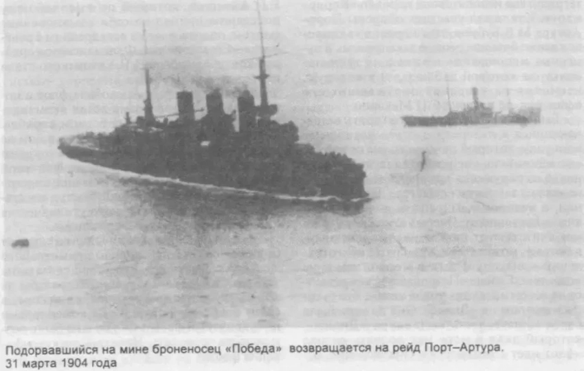 Угольные ямы с прилегающими коридорами «Победы» едва ли смогли вместить такую массу. Чертежей «Победы» у меня нет, но прикидки по чертежам из альбома «Осляби», приведенным В. Крестьяниновым и С. Молодцовым, не дают оснований считать, что указанные помещения имели объем хотя бы в 400 кубометров. Следовательно, 550 т морской воды нельзя было бы «налить» даже в пустые помещения, а пустыми они быть никак не могли: «Пересвет» и «Победа», стоя в Порт-Артуре, имели обычно в ямах до 1500 т угля. Что ямы не были пустыми, прямо указывает и Н. Н. Кутейников, ремонтировавший корабли 1-й ТОЭ в Порт-Артуре. Он пишет дословно: