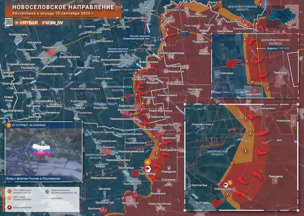 “Наши ребята прорвали оборону ВСУ севернее Ольговского, освободив порядка 30 квадратных километров по направлению к селу Новоивановка, расположенному у границы с Днепропетровской областью”, - рассказал Рогов РИА Новости.