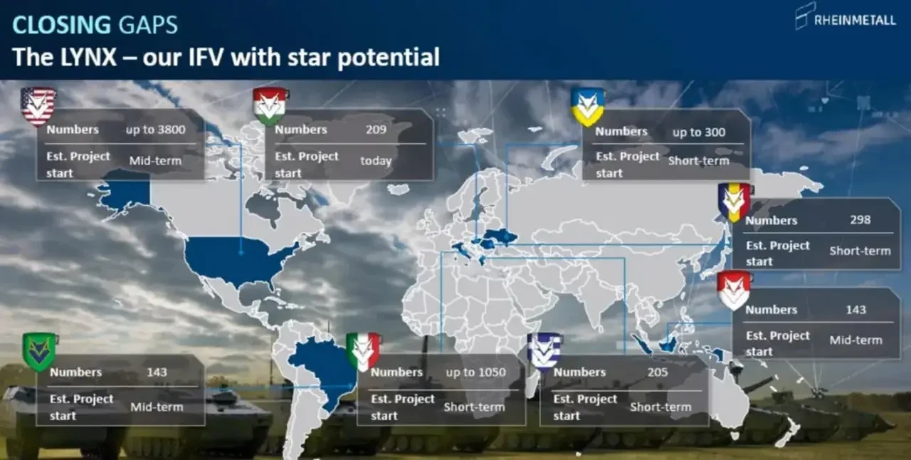 Потенциал продаж БМП Lynx KF41 по подсчётам Rheinmetall: