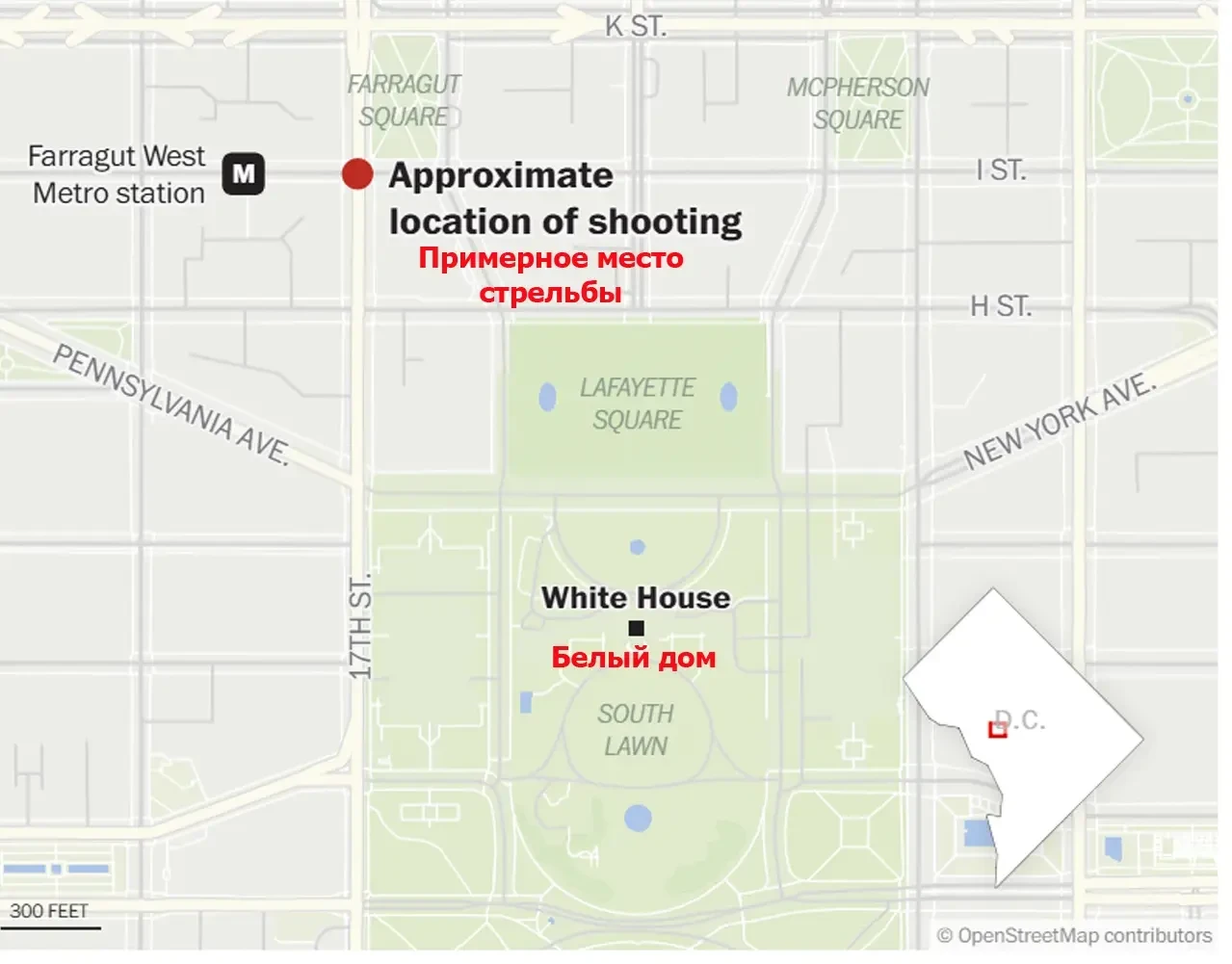 В результате стрельбы тяжёлые ранения получили двое военнослужащих НГ из Западной Вирджинии. Стрельба произошла неподалёку от Белого дома. Потом стали появляться сообщения о том, что как минимум один из них скончался в клинике. Однако пока официально информация о гибели нацгвардейца не подтверждена.