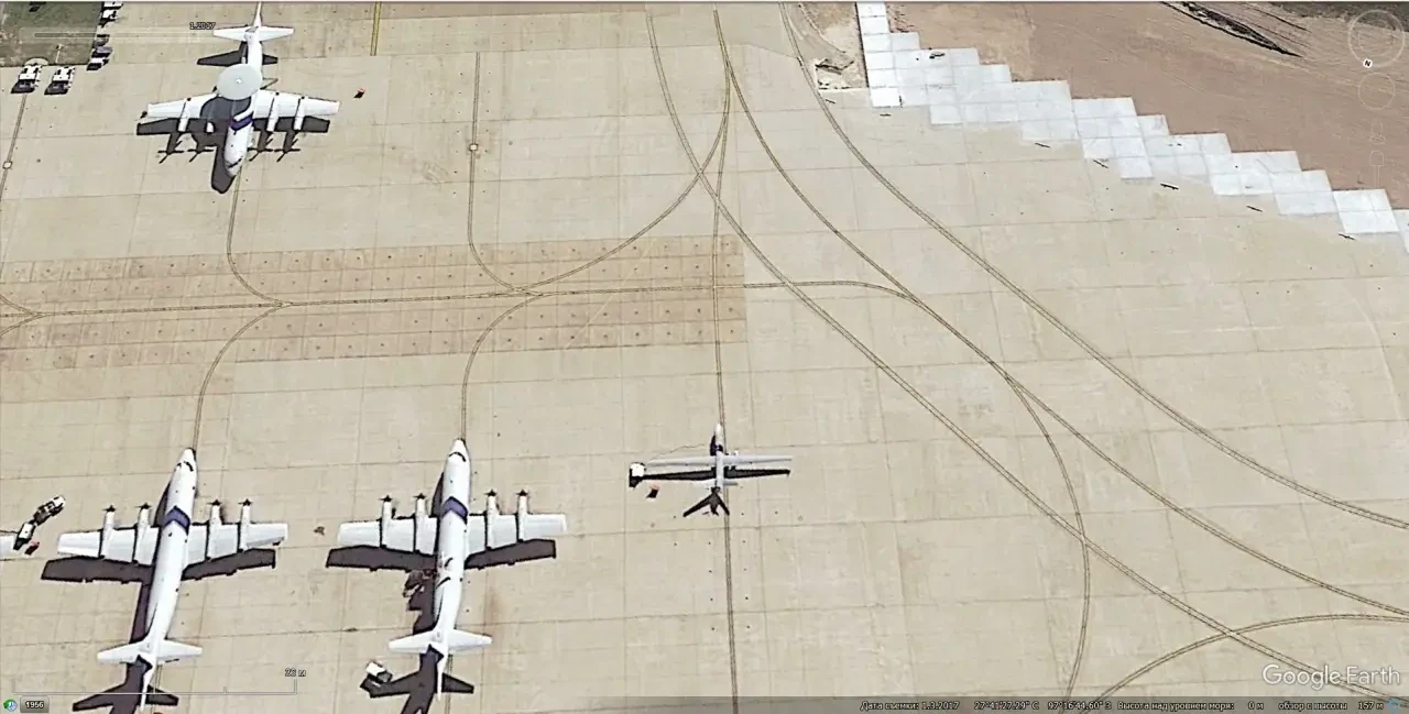 Спутниковый снимок Gооglе Eаrth: самолёты Lockheed EP-3E Aries II на базе хранения авиационной техники Девис-Монтен