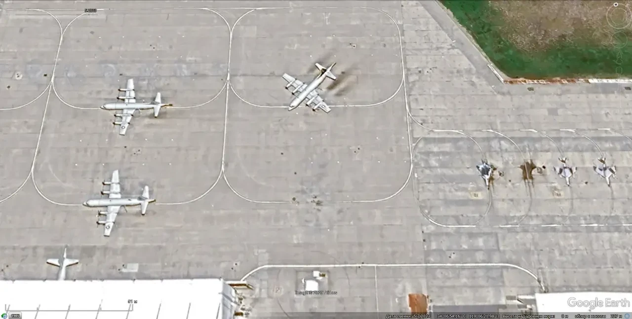 Спутниковый снимок Gооglе Eаrth: самолёт Lockheed EP-3E Aries II на авиабазе Патуксент-Ривер. Снимок сделан в июне 2022 года