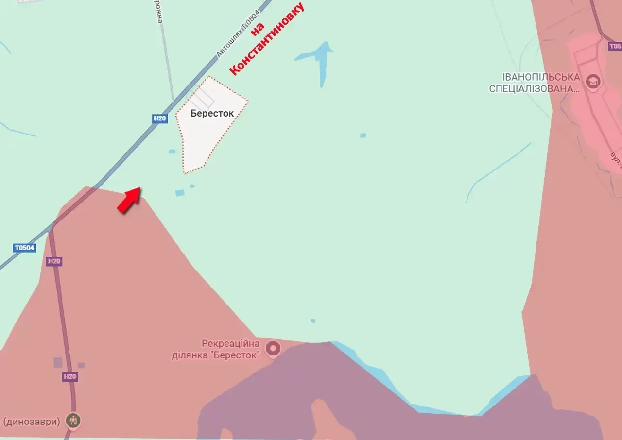 По состоянию на данный момент российские войска взяли под контроль Берестокскую автодорожную развязку, подойдя на близкую дистанцию к селу, по которому она и была названа. Это село Бересток, находящееся всего в 1,3 км от южных окраин Константиновки.