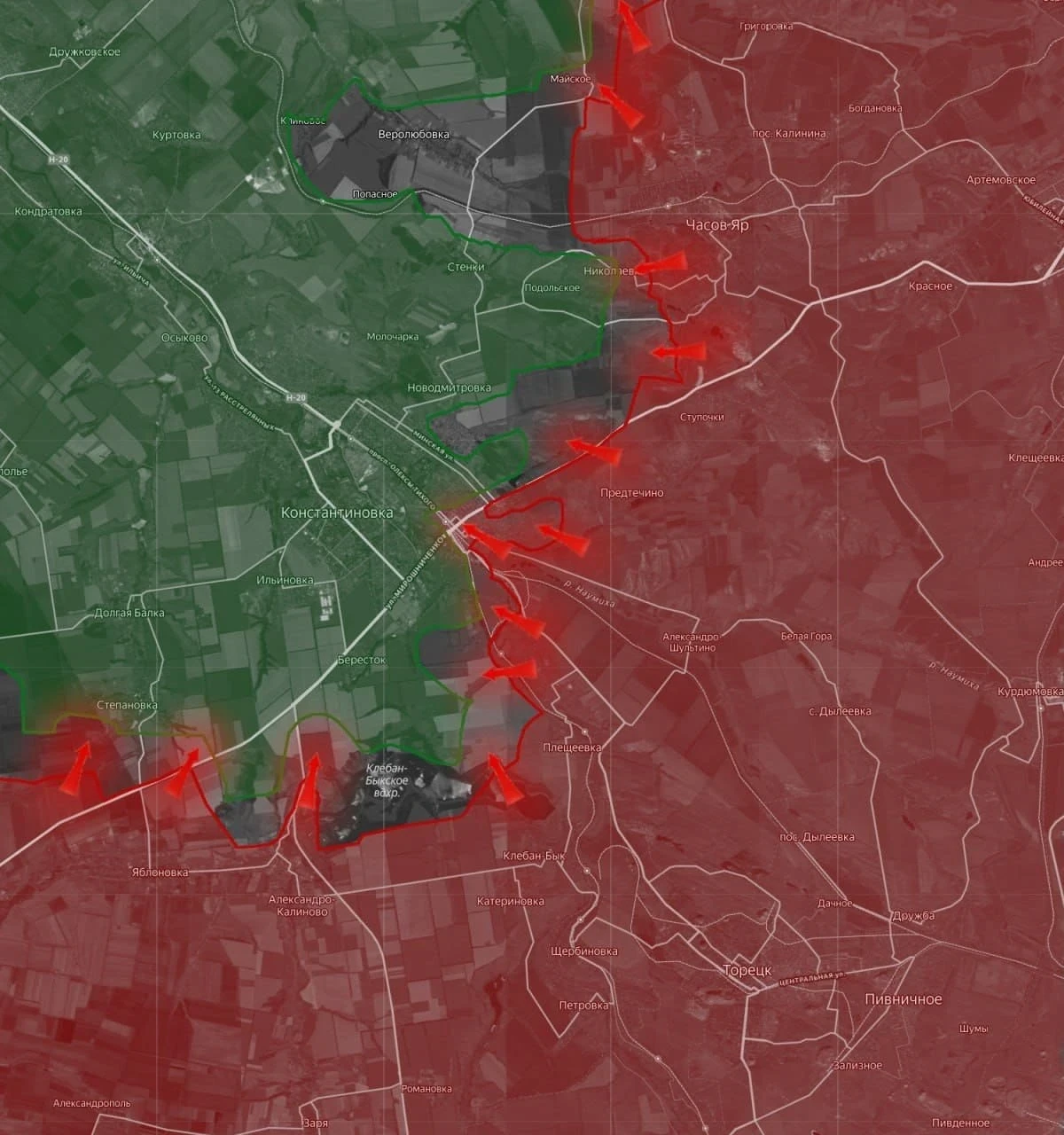 На Константиновском направлении ВС РФ вышли к Степановке с юга и стараются зацепиться за село. В Константиновке наши бойцы углубляются в центр города. Сообщают, что Новомарково практически перешло под наш контроль. Есть успехи в районе Миньковки. От этого села меньше 7 км до выхода в тыл гарнизону ВСУ в Рай-Александровке.