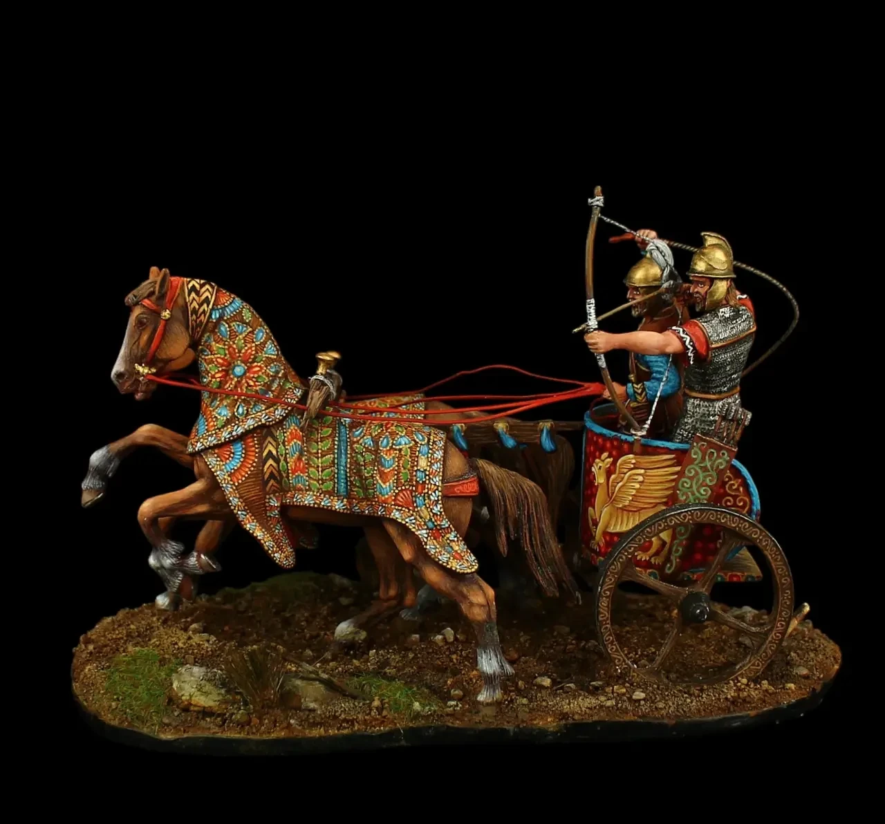 Ассирийская колесница. Я бы, конечно, не стал расписывать обода колес и стенки короба, но… красиво смотрится, что и говорить. Правда, царь в такой колеснице смотрелся бы эпичнее. Производитель: «Silver Dream Studio» и компания «Ниена»