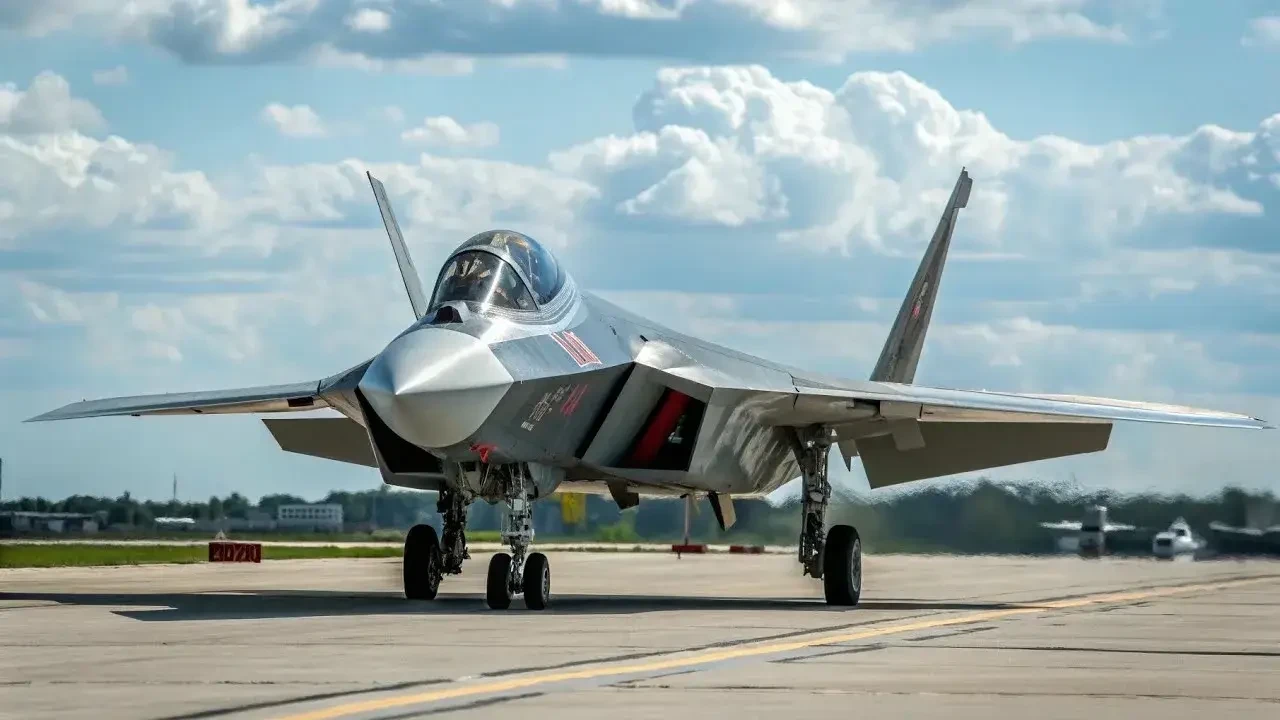 Российский истребитель пятого поколения Су-57 на авиабазе Елаханка в Бангалоре, 10 февраля 2025 года