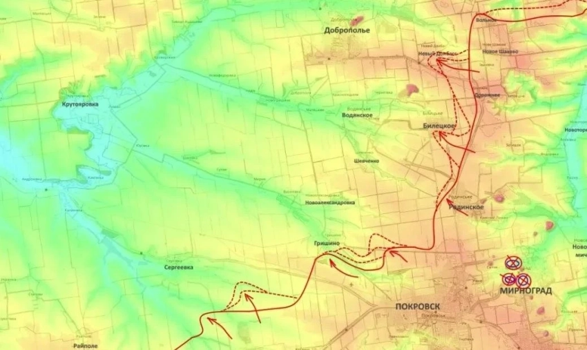 На Покровско-Кураховском направлении продолжается движение от Новоподгороднего в сторону Межевой. Усиливается давление на линию Сергеевка - Вольное, а продвижение в районах Белицкого и Нового Донбасса указывает на нарастающие сложности с удержанием обороны.