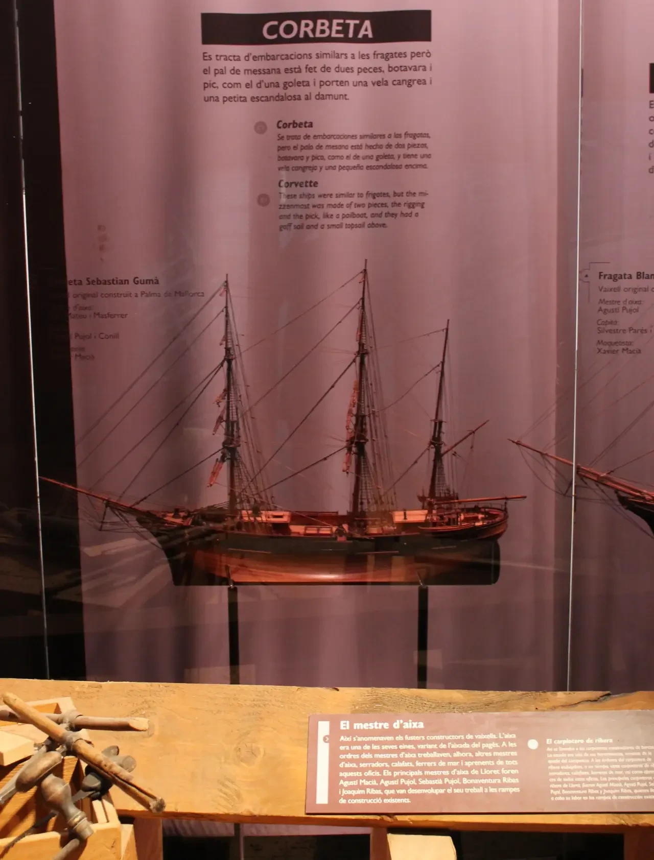 Особое место среди рабочих верфей занимали корабельные плотники. Это была особая группа мастеров, главным рабочим инструментом которых было тесло, что-то вроде обычной крестьянской цапки. Под руководством одного корабельного плотника сразу работали и другие корабельные плотники, а также пильщики, кузнецы и многочисленные подмастерья – «подай-подержи-принеси». До нас дошли имена известных корабельных плотников Льорета – Агусти Масиа, Агусти Пужоля, Себастиа Пужоля, Бонавентуры Рибаса и Жоакима Рибаса.
