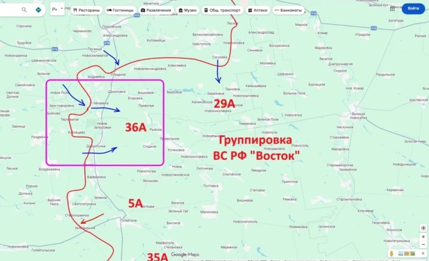 В полосе 36-й армии украинским войскам даже на какой-то момент удавалось проскочить через реку Ганчур и они были замечены на северо-западных окраинах населённого пункта Сладкое и на западных окраинах Рыбного, где их останавливали и уничтожали бойцы армии РФ.