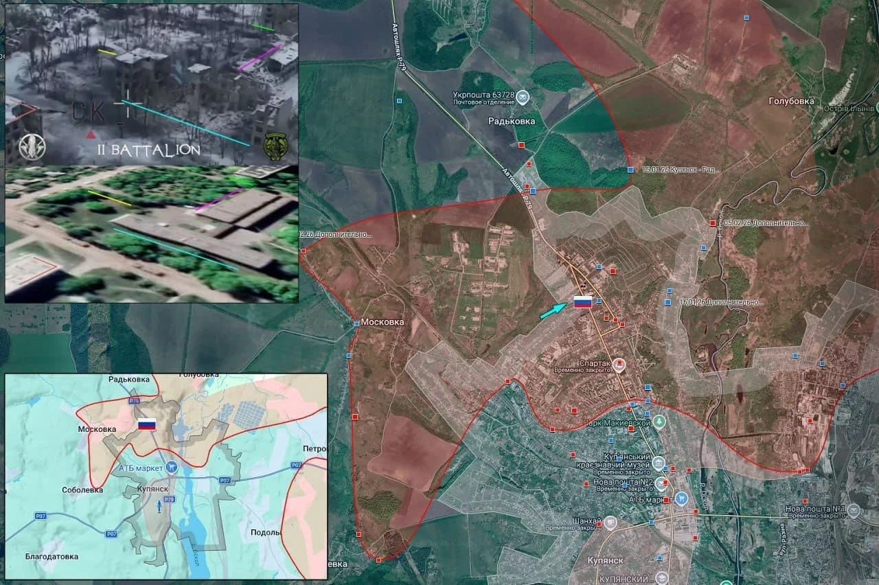 Карта боевых действий на Купянском направлении по данным на 17.02.2026