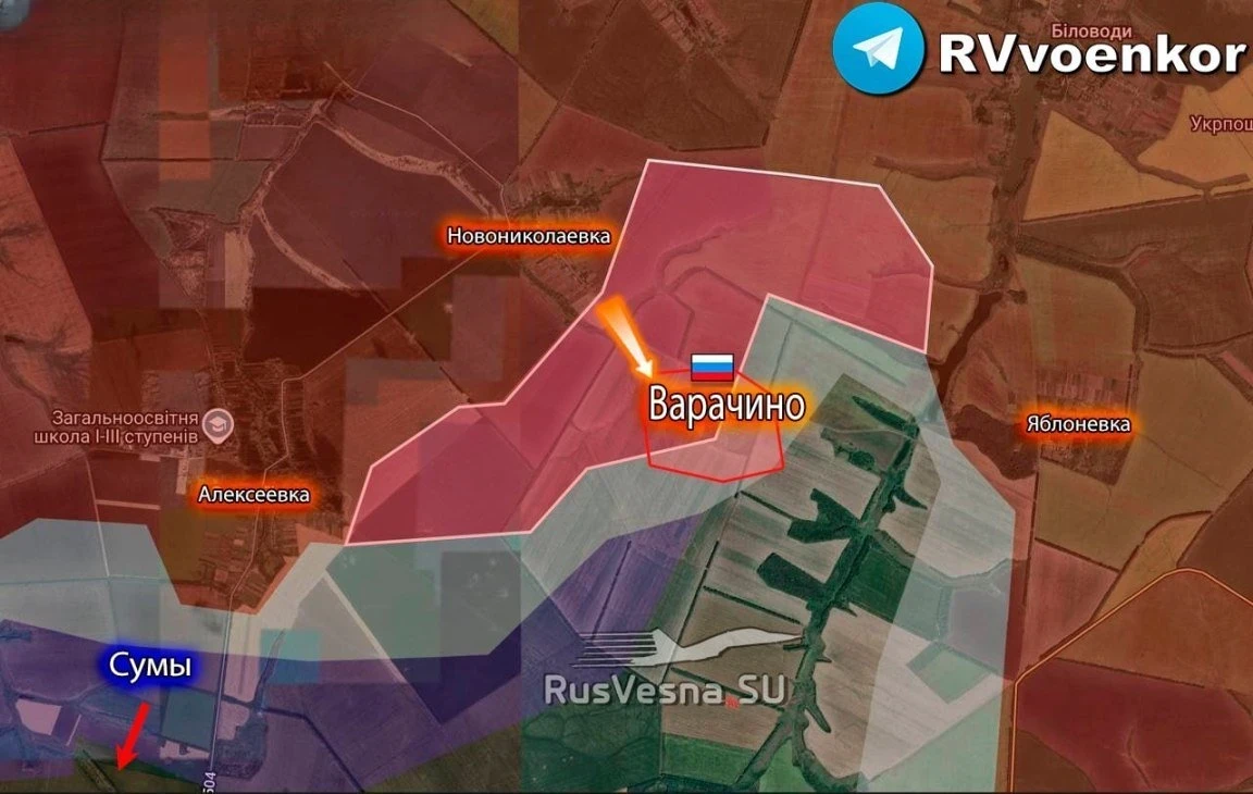 Группировка «Север» продолжает вести тяжёлые бои в Сумском и Краснопольском районах. Отмечается успешное продвижение наших войск в районах Алексеевки, Андреевки и Константиновки, а также занятие новых позиций в районе Варачино. Противник вынужден признать, что наши подразделения вошли в посёлок Сопычь Глуховского района, расположенный в 10 километрах к северу от ранее освобождённой Белой Берёзы.