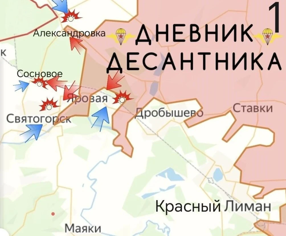 Ожесточённые бои продолжаются в районе Александровки, Яровой и Соснового. Наши войска расширили зону боев в Сосновом, продвигаясь в сторону железнодорожной станции Святогорск. Уже идут бои на подступах к самому Святогорску.