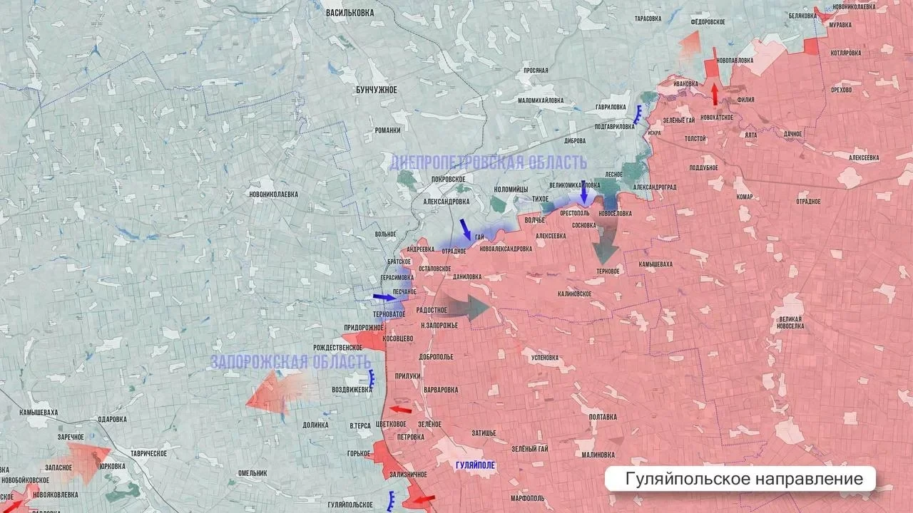На Гуляйпольском участке со стороны Горького и Цветкового российские части продвигаются к крупному укреплённому району южнее Верхней Терсы. Освобождение этого узла обороны позволит стабилизировать линию фронта: именно с этого участка противник направлял диверсионные группы в районы Прилук и Еленоконстантиновки.