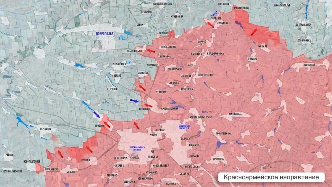 С Красноармейского направления поступают сообщения о продвижении российских подразделений в районе Гришино. Подробности уточняются.