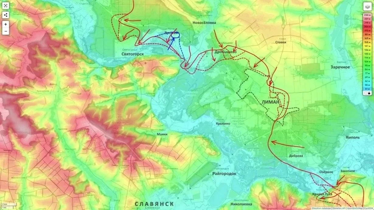 В свою очередь на Лиманском направлении бойцы бойцы армии России продолжают методично дожимать противника. Завершается зачистка Дробышева и Яровой, а передовые отряды уже завязывают бои за Святогорск. Давление на северные подступы к Лиману усиливается с каждым днем.