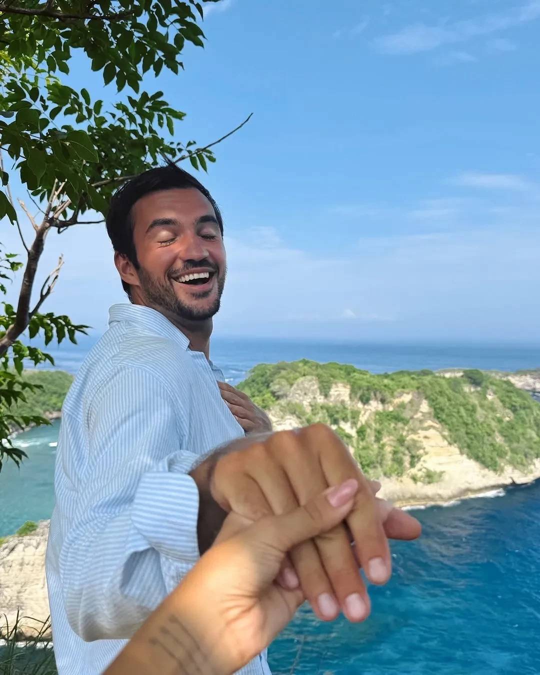 "Пока не понимаю, что произошло. Смеёмся и плачем от счастья второй день. Вернусь скоро со сторителлингом", — подписала снимки Анфиса, на которых она позирует на фоне балийских пейзажей с бойфрендом и бриллиантовым кольцом на пальце.