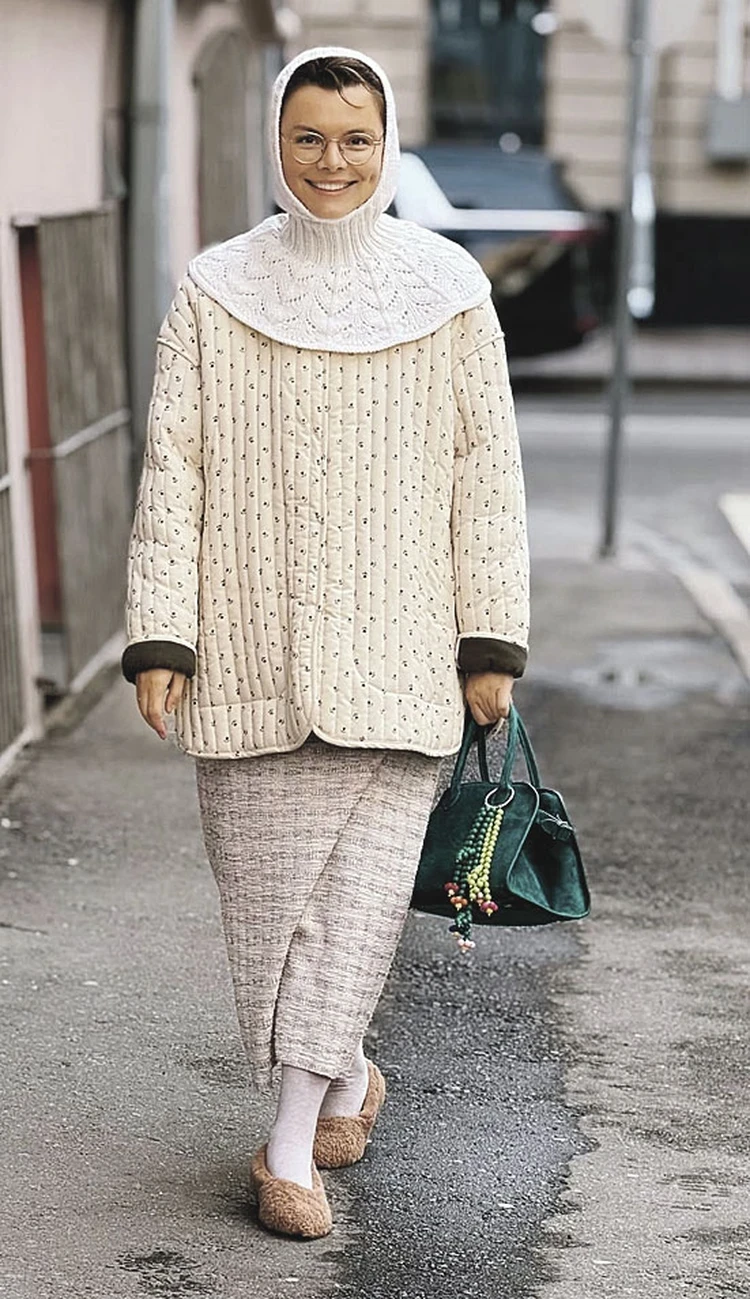 - Думаю, когда Коко Шанель радовалась, что ее вещи «вышли» на улицы, она и представить себе не могла, что ее элегантные, ставшие мировой классикой сумки будут миксовать с вызывающим леопардовым принтом. Сумка такая стоит немалых денег - от 500 тысяч рублей. Татьяна забыла о главном модном правиле: в образе должен быть один яркий акцент. В данном случае можно было сделать таким акцентом леопардовый пуховик и поснимать все «рюши и побрякуши». Ну не сочетается никак леопардовый пуховик с детским вязаным капором, варежками и люксовой сумкой.