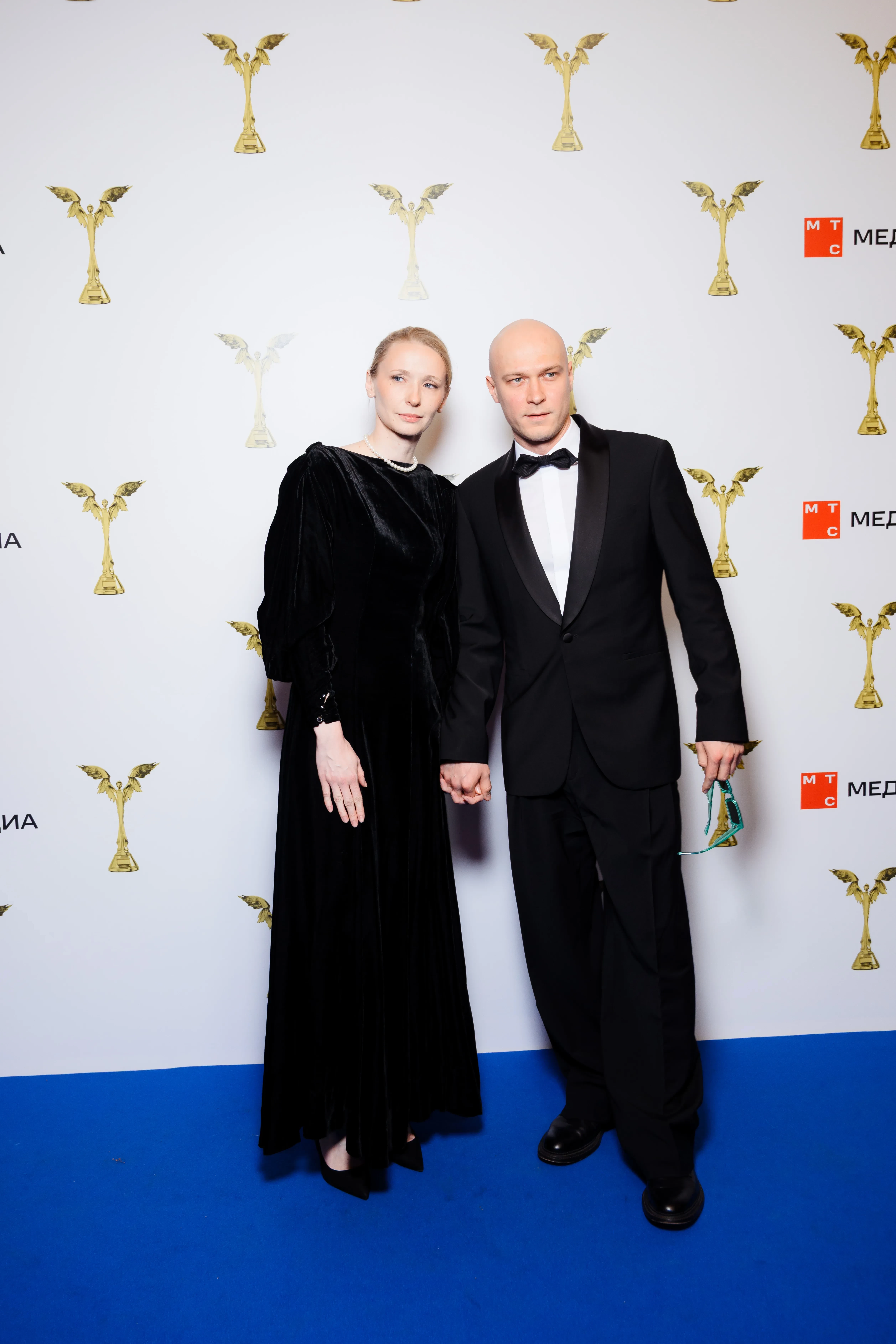 Для выхода в свет Борисов выбрал классический смокинг Dmitry Loginov с широкими брюками, рубашкой, бабочкой в стиле old fashion и камербандом. При этом уже в зале он надел солнцезащитные очки в яркой оправе. 34-летняя Анна появилась в театре "Маска", где проходила церемония, в чёрном бархатном платье в пол. Свой образ она дополнила ниткой жемчуга. Супруги держались за руки перед камерами.