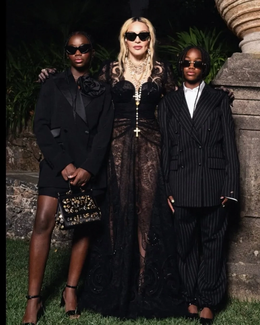 На кадрах звезда позирует на природе в чёрном платье в горох вместе с 28-летней дочерью Лурдес от Карлоса Леона, а также с приёмными детьми: 19-летним Дэвидом Бандой, 19-летней Мерси и 13-летними близнецами Стеллой и Эстер. 24-летний сын Рокко от брака с Гаем Ричи пропустил семейное торжество.