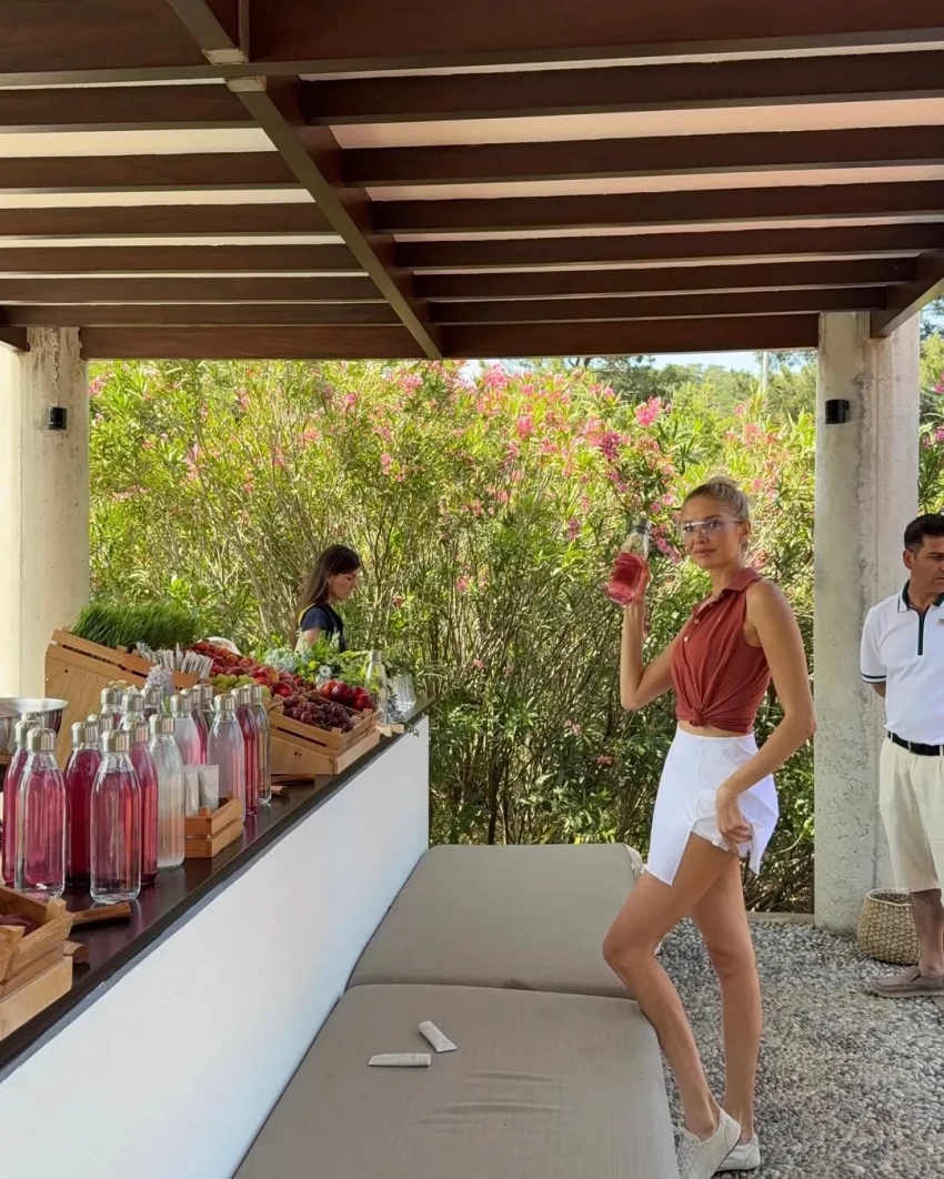 В отеле Aman в Турции прошёл запуск новой теннисной коллекции бренда Кристины Романовой Aman Essentials. 30-летняя возлюбленная миллиардера Владислава Доронина собрала на мероприятии друзей и светских гостей, среди них: известный теннисист Новак Джокович, Елена Перминова с бойфрендом Тарасом Романовым, актёр Эдди Редмэйн, Инга Рубинштейн, светская девушка и супруга звезды "Аватара" Сэма Уортингтона Лара, модный блогер Бека Гвишиани и другие.