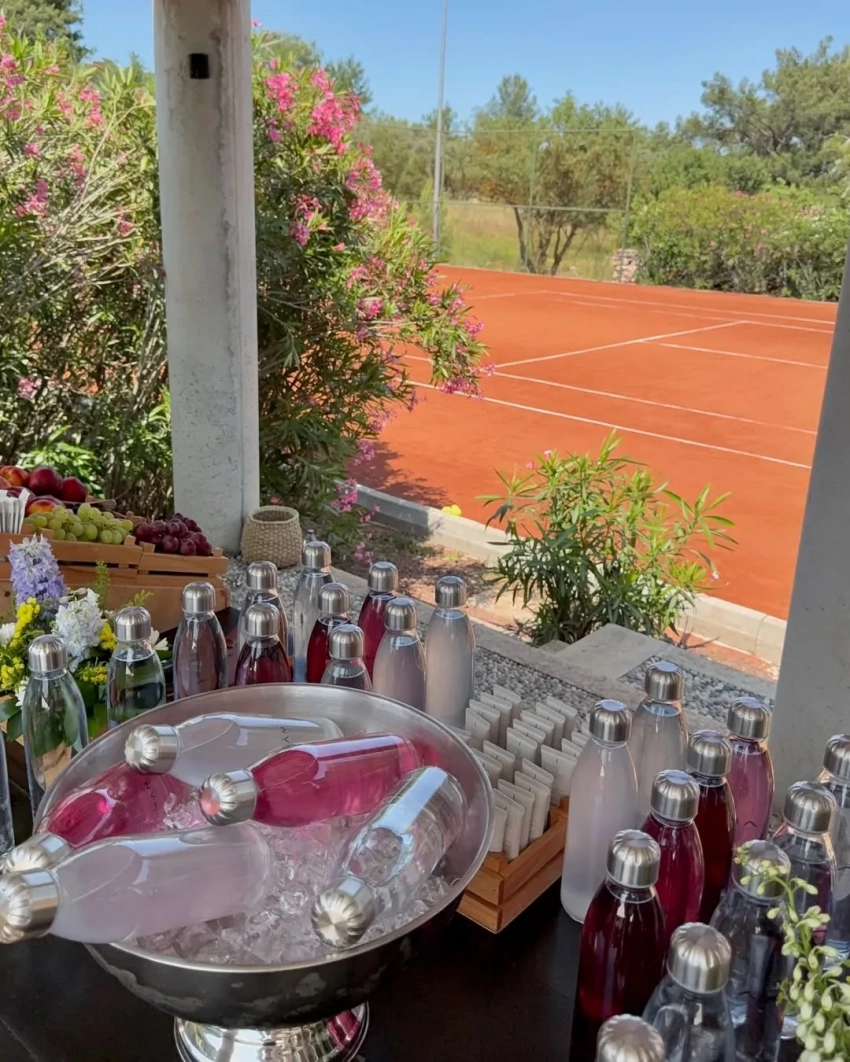 Днём гости сыграли в теннис в компании Джоковича в вещах из новой коллекции марки и дискутировали на темы здорового образа жизни и спорта, а ближе к вечеру переоделись в вечерние образы и переместились на светский ужин к пирсу.