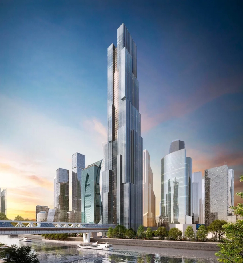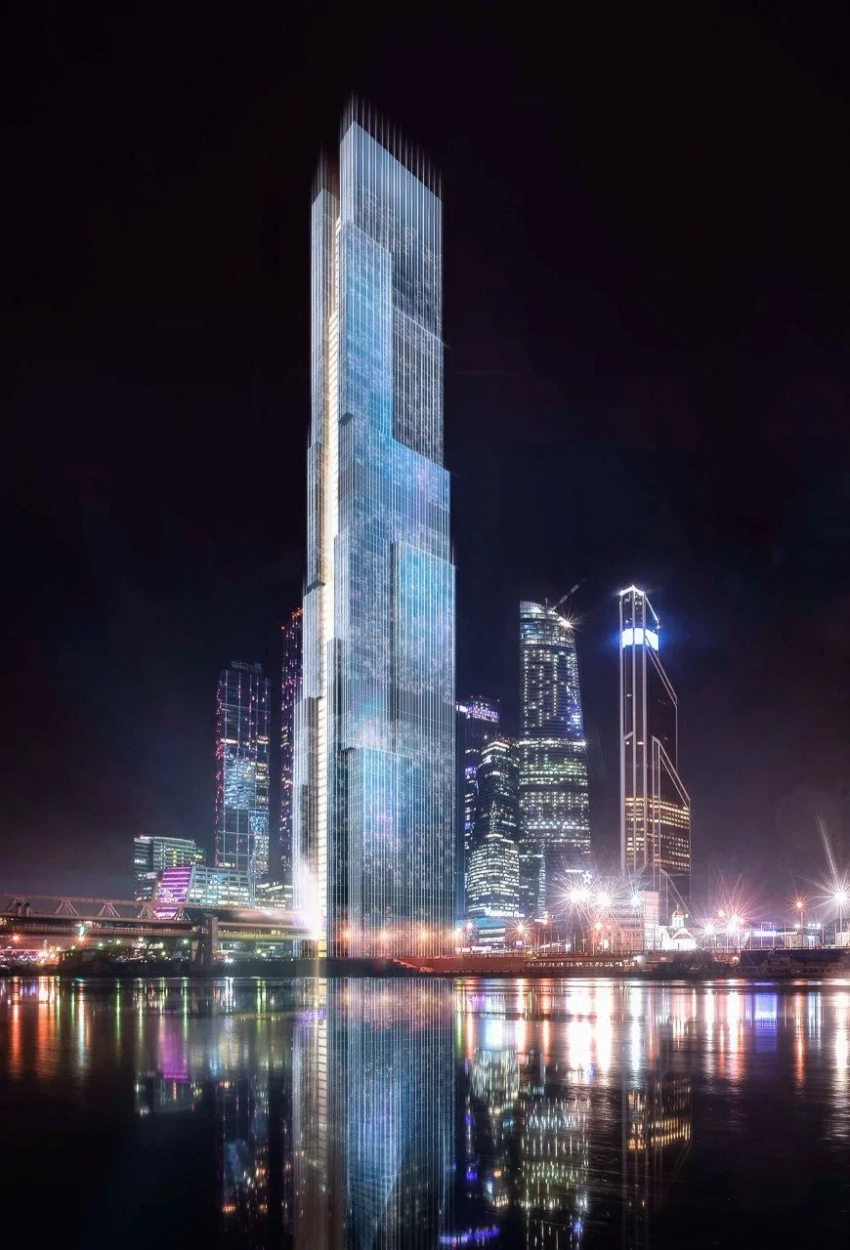 Офисное здание высотой почти 400 метров будет иметь 80 этажей (включая подземные) и сможет разместить до 17 тысяч человек. Комплекс, в основе концепции которого — супрематические идеи Казимира Малевича, построят у моста Багратион (предварительно, называться он будет так же). Его особенностью будет "световой водопад", который создадут панорамные лифтовые шахты. Срок сдачи объекта — 2030 год.