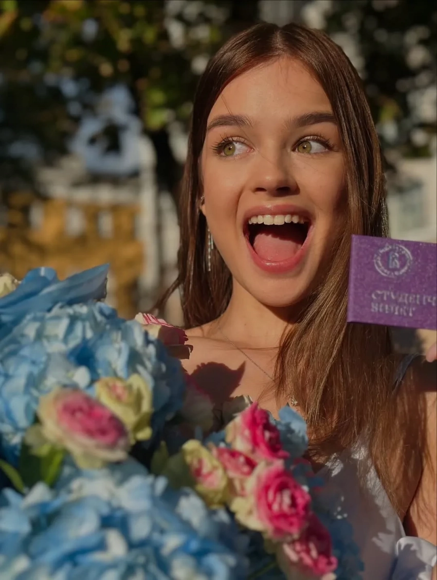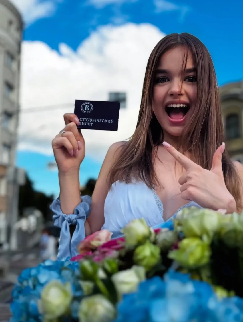 Александрина ОлексюкНа какой именно факультет она поступила, Олексюк не уточнила, так же как и форму обучения. При этом известно, что у вуза есть гуманитарные специальности, а на платном отделении стоимость учёбы может доходить почти до 800 тысяч рублей в год.