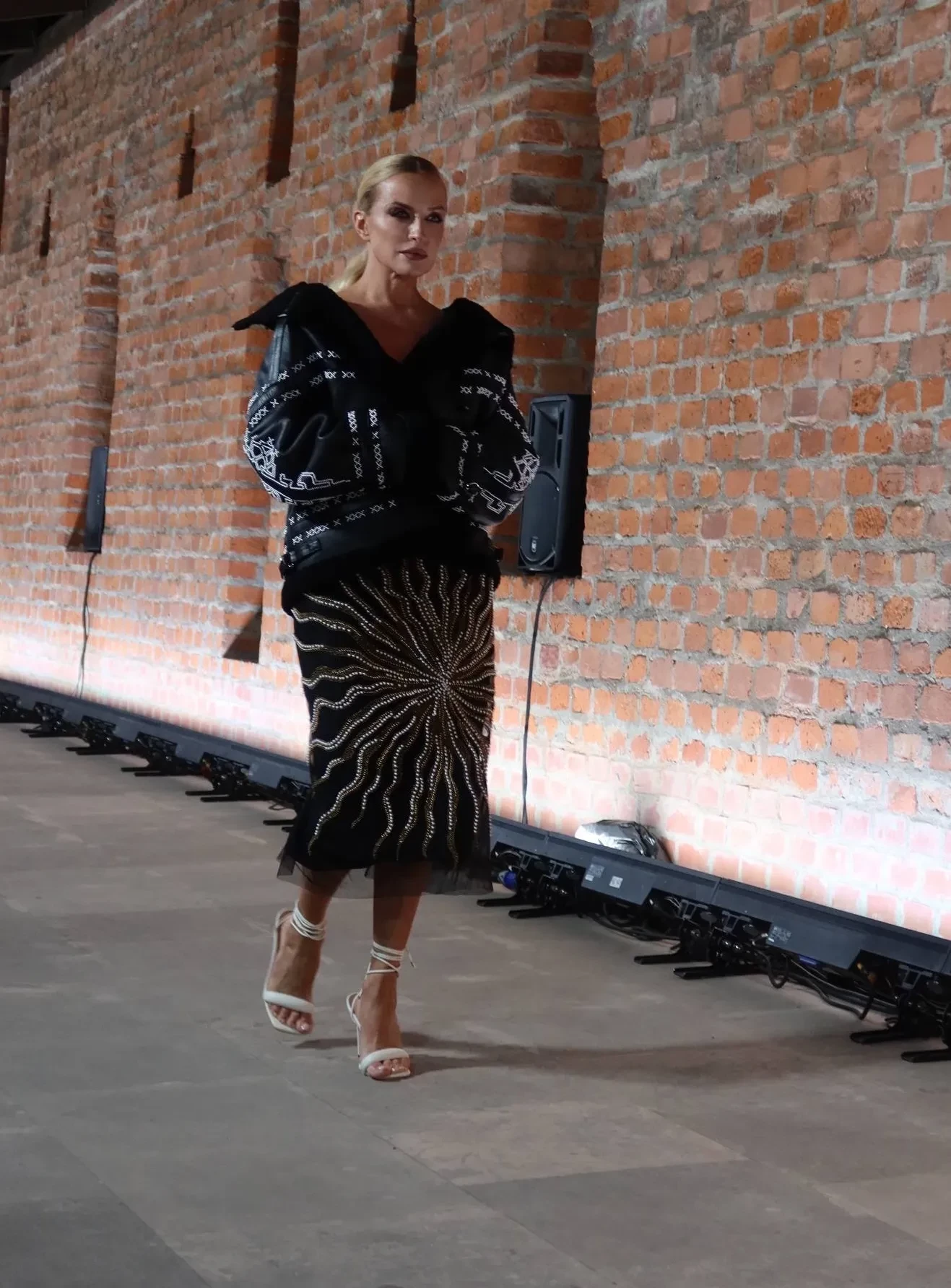 Шоу, приуроченное к 25-летию бренда, прошло на Китайгородской стене в парке "Зарядье". 37-летняя супруга Константина Эрнста Софья пришла на показ в платье и сапогах от Алёны Ахмадуллиной, дополнив образ кепкой John Galliano. Юрий Колокольников надел чёрный костюм свободного кроя, а его супруга Вильма Кутавичюте выбрала кожаную юбку и белую блузу.