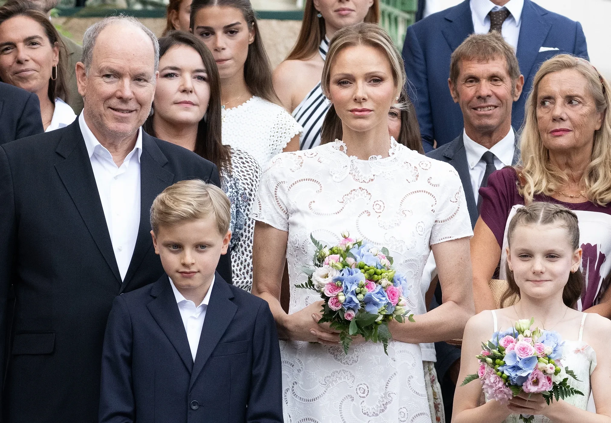 Вместе с родителями пришли на пикник и 10-летние близнецы Жак и Габриэлла. Как и её мама, Гарбриэлла была одета в белое платье, а в руках держала букет из голубых, розовых и белых цветов. Жак и его отец оделись в строгие костюмы.