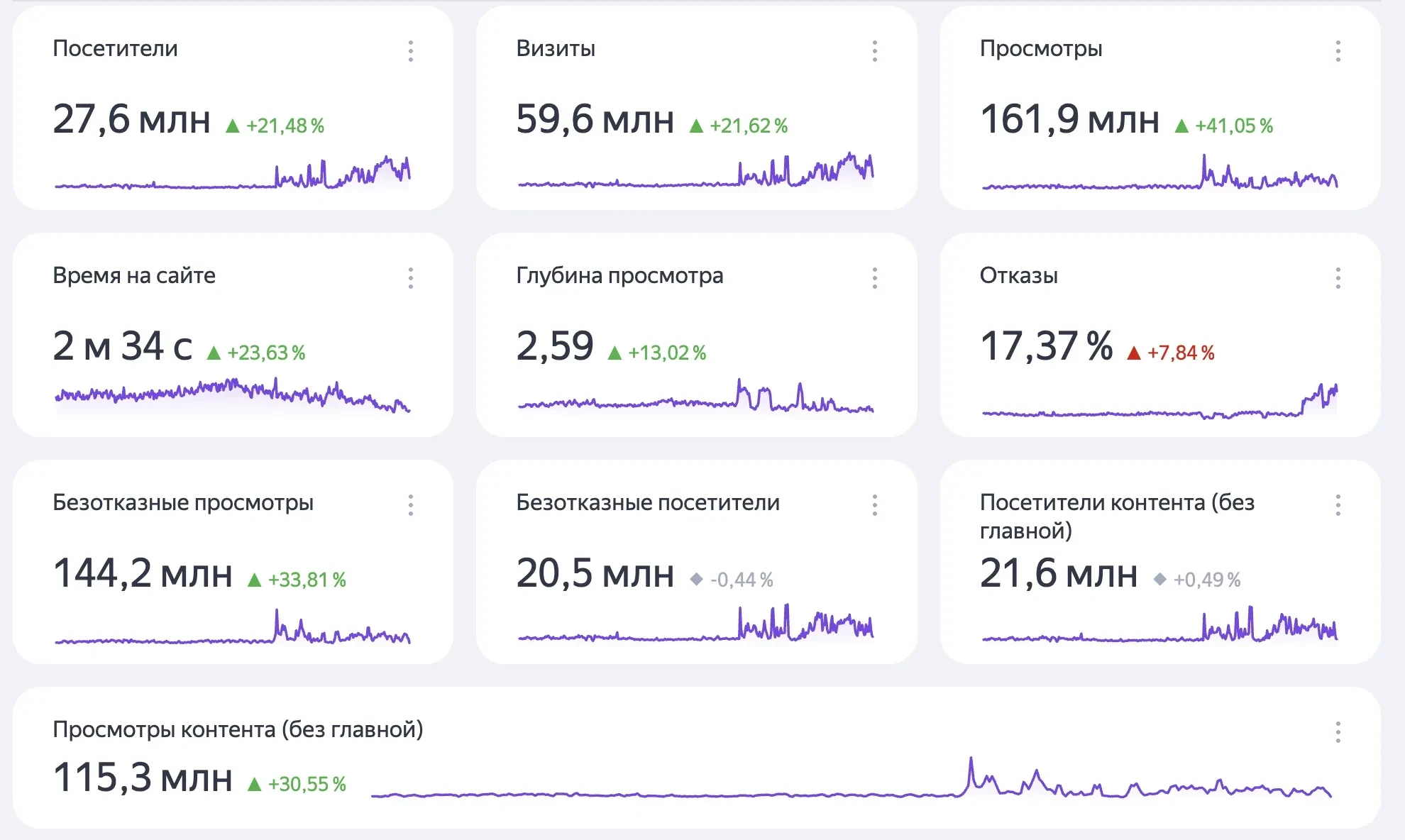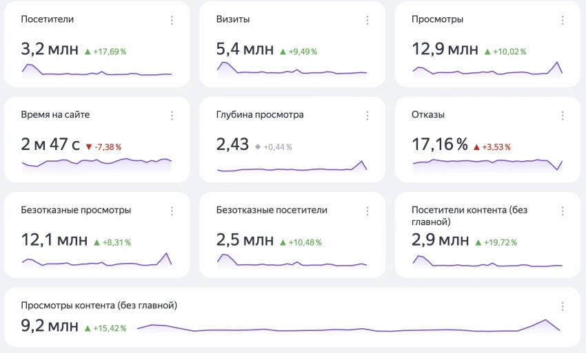 Посетители контента (без главной): 2,9 млн
