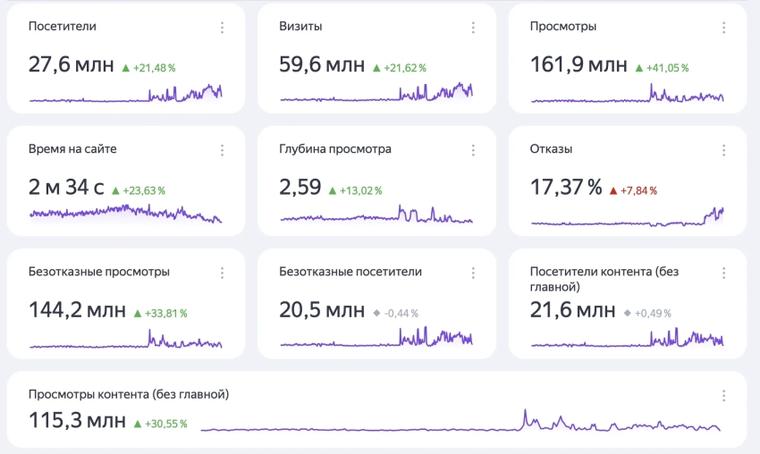 Посетители контента (без главной): 21,6 млн