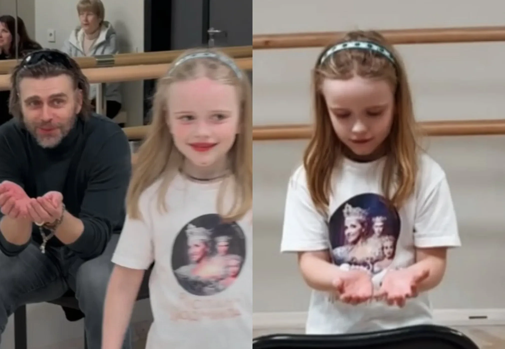 На кадрах девочка запечатлена во время репетиции одного из ледовых шоу, в котором она примет участие вместе со своим отцом. При этом Чернышёв лично присутствует на репетиции и поддерживает Милу. Известно, что репетиции проходят не только в зале, но и на ледовой арене. Мила уже выходила на лёд вместе с отцом: в феврале она выступила на "ЦСКА Арене" с номером, посвящённым Анастасии Заворотнюк.