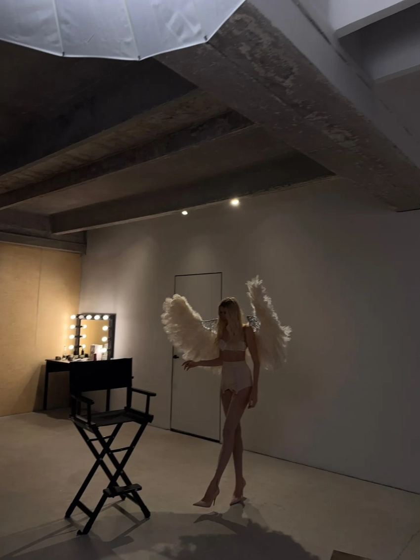 Для съёмки Перминова примерила белый кружевной комплект нижнего белья. Образ завершили туфли на шпильке и массивные ангельские крылья в тон наряду. "Дорогой Санта: в этом году я был ангелом", — подписала модель публикацию.