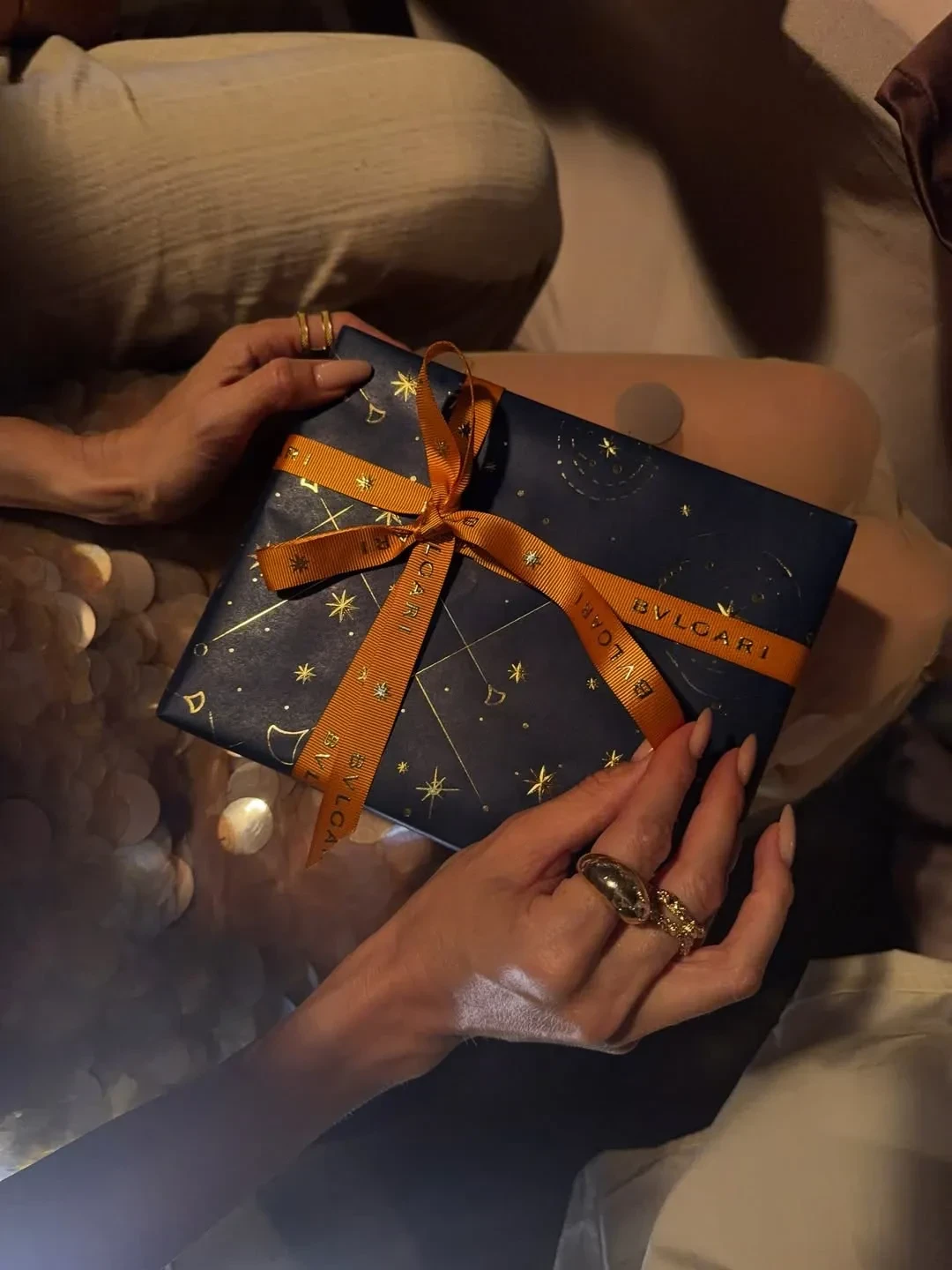 "Наш Новогодний вечер в самом волшебном месте", — написала Елена Перминова. В новогоднюю ночь она выгуляла два образа: платье с золотыми пайетками и прозрачной юбкой и голубое платье с вырезом на бедре. 11-летняя дочь Перминовой Арина уже примеряет наряды матери: она позировала на празднике в красном платье, в котором Елена отмечала свой день рождения в Венеции.