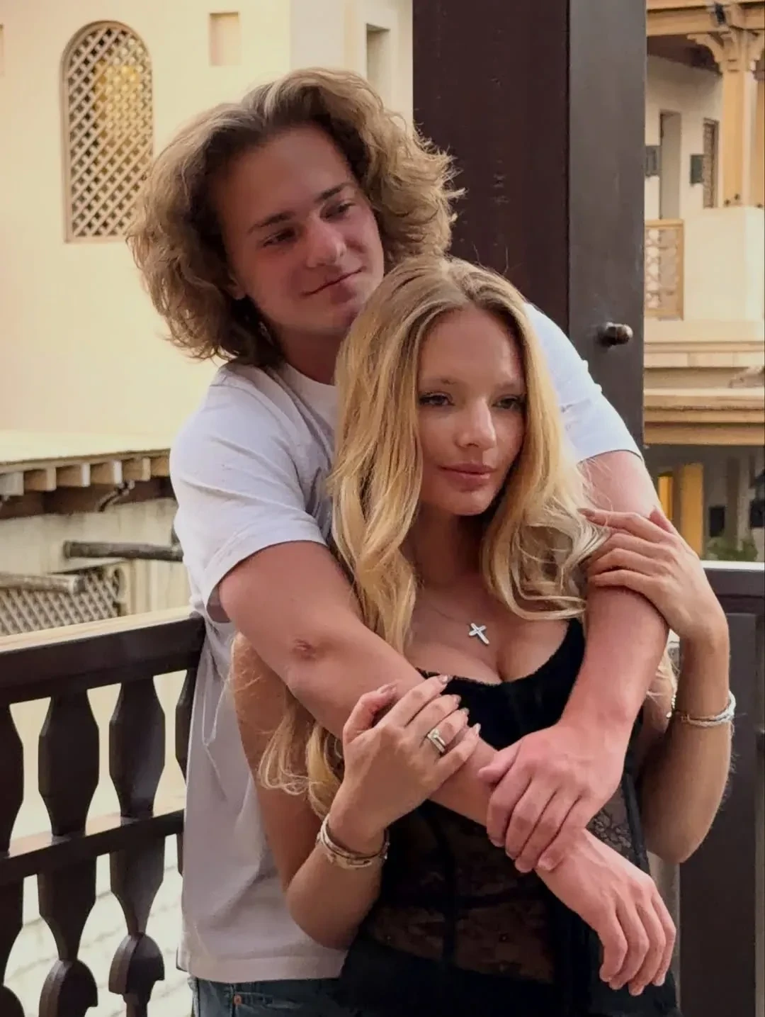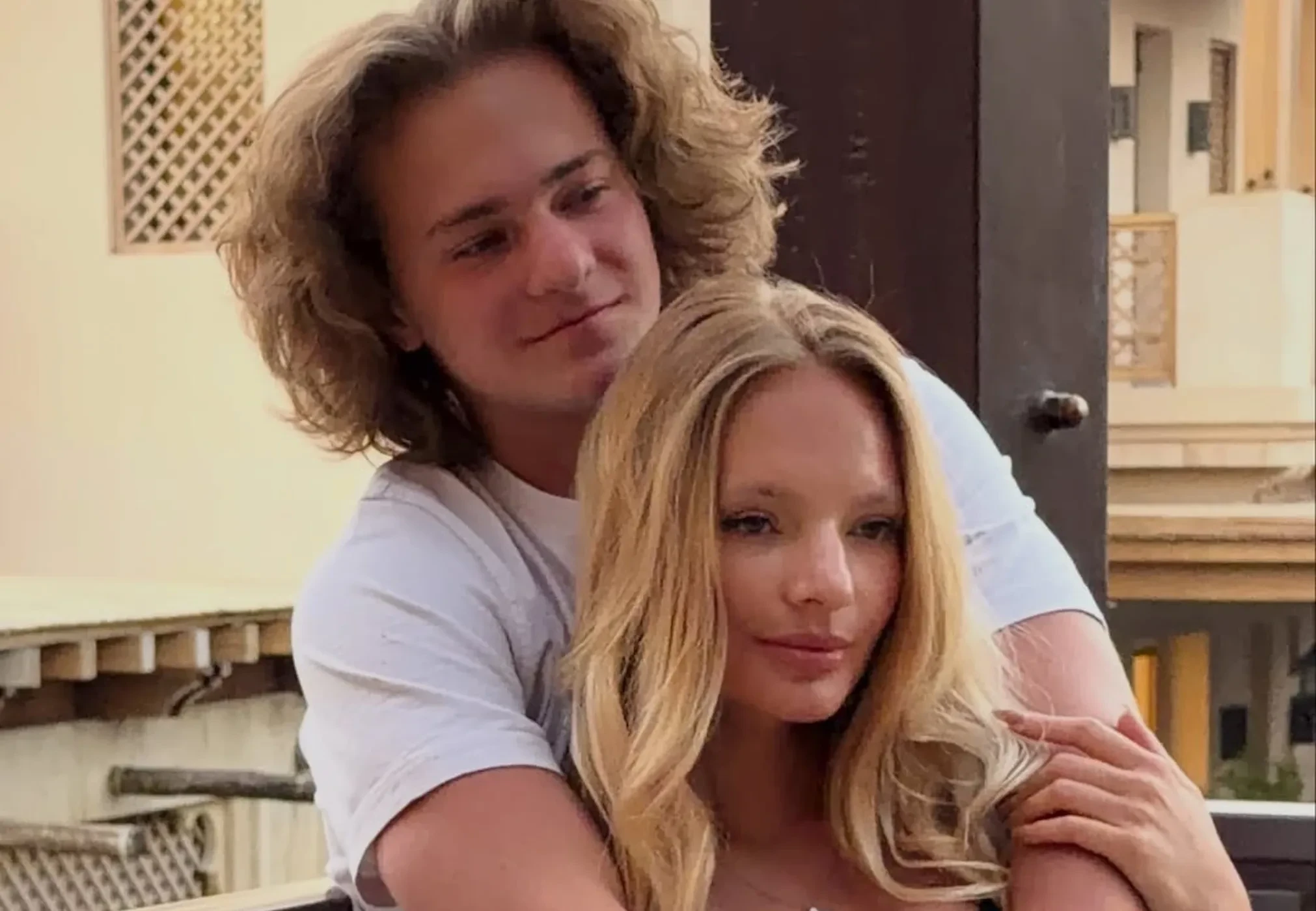 На снимках 28-летняя Елизавета в кружевном корсете позирует в обнимку с 16-летним братом на террасе. "Братик подрос", — подписала фотографии Пескова.