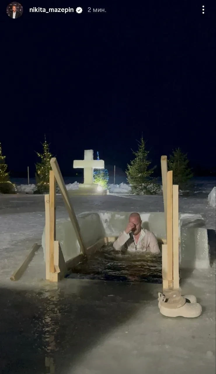 https://t.me/spletnik2006/47360Окунулись в прорубь супруга ресторатора Бориса Зарькова Ирина, гонщик Никита Мазепин и рэпер Macan, который недавно ушёл в армию. Юлия Пересильд ограничилась тем, что окунулась лицом в снег, Ксения Бородина с мужем Николаем Сердюковым предпочли прогулку по Суздалю. Возлюбленный Евгении Медведевой, танцор Ильдар Гайнутдинов, поздравил подписчиков в соцсетях с праздником и показал кадры, на которых занят набором крещенской воды.