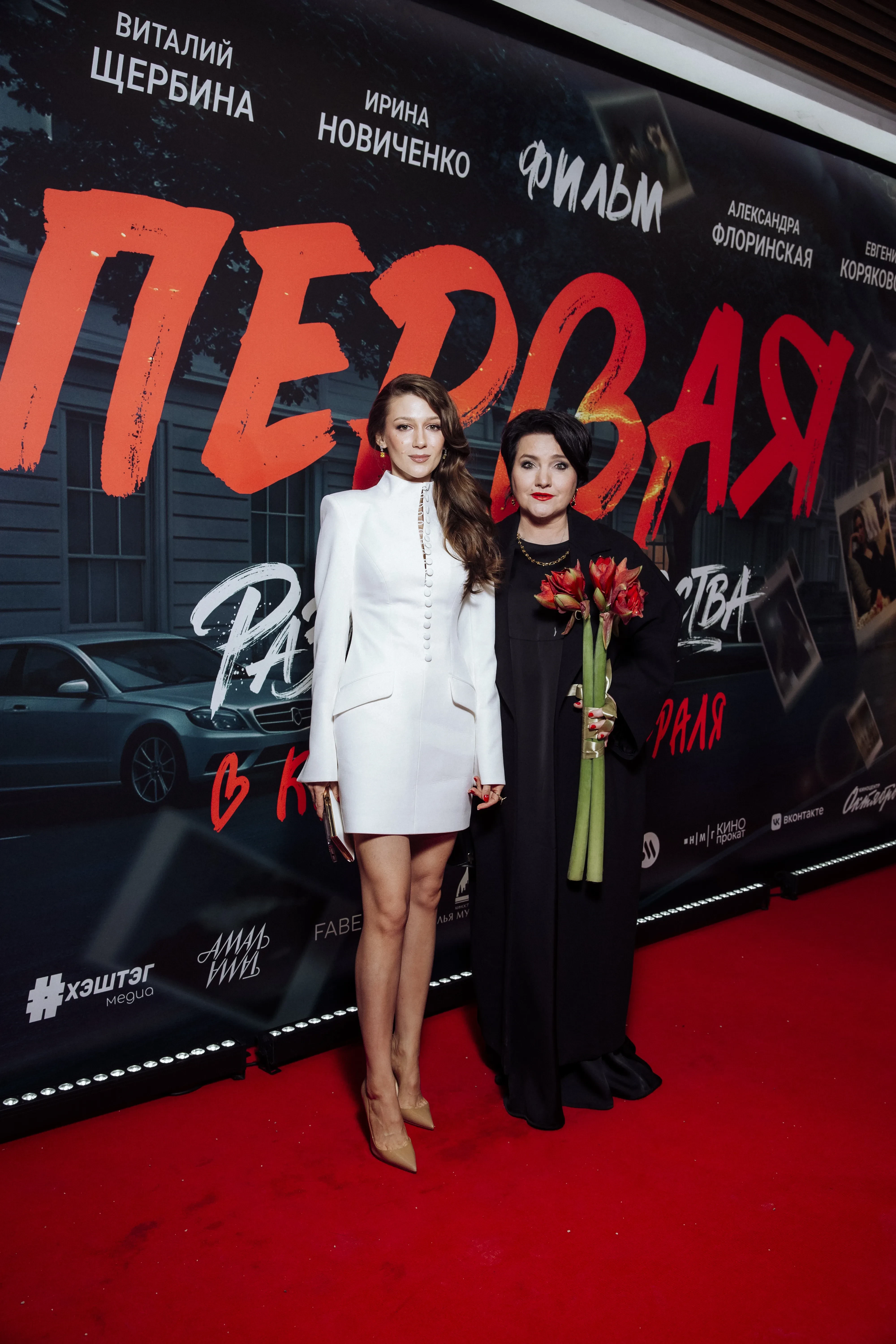 Анна Пересильд, которая пришла поддержать своего коллегу по "Алисе" Савостюка, привлекла внимание фотографов новым имиджем. 16-летняя актриса, которая уже стала популярней своей матери Юлии Пересильд, срезала длинные локоны, сделав короткую стрижку. На премьере она была в многослойном образе в стиле Y2K. Не скрылись от камер и будущие родители Алексей Столяров и Вера Бондарева: 35-летний фитнес-блогер, которого называют "бывшим зятем Шойгу", позировал в классическом чёрном костюме и футболке в тон, а 32-летняя чемпионка России и мира по бальным танцам — в мини-платье с вырезом в зоне груди.