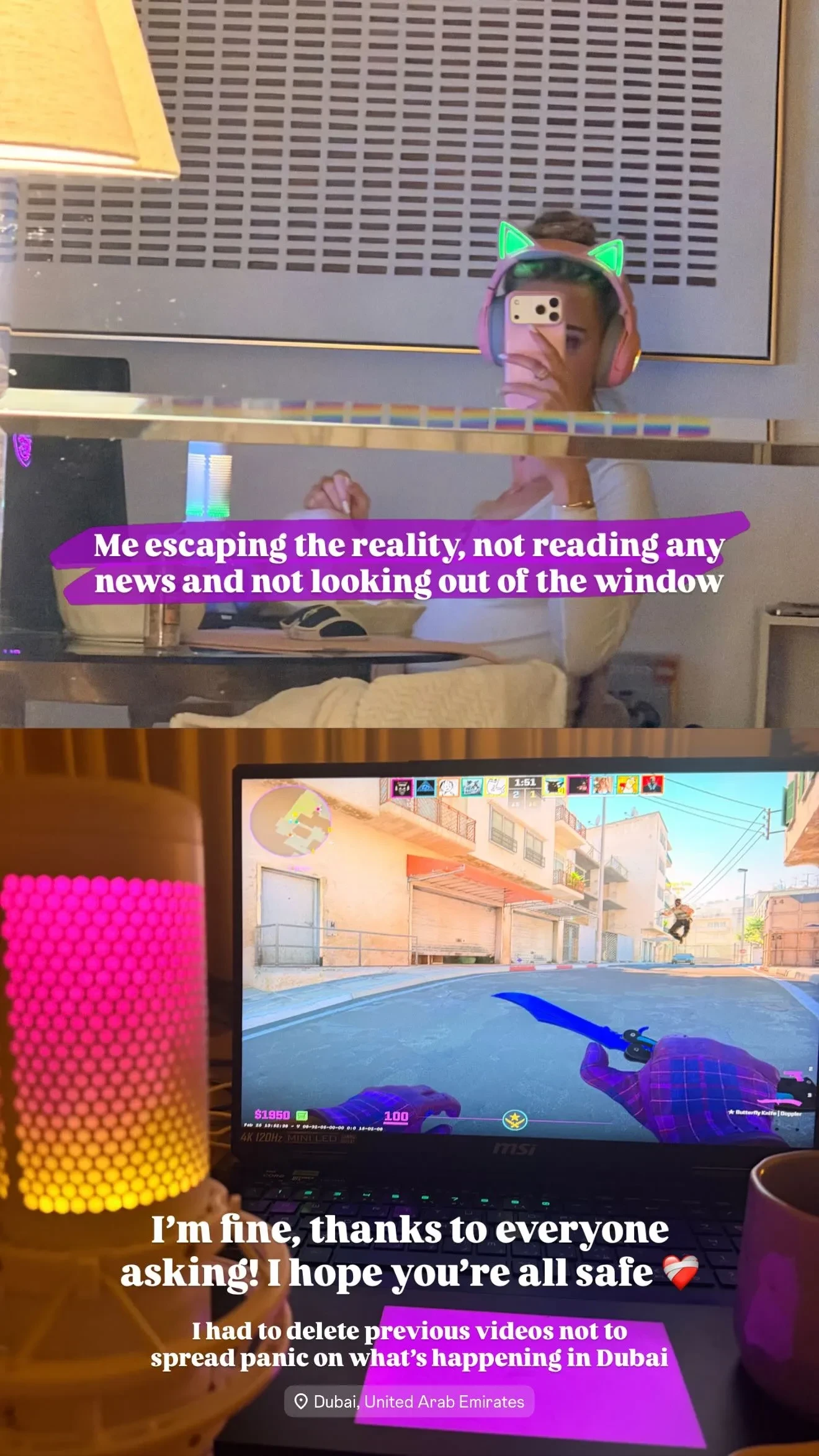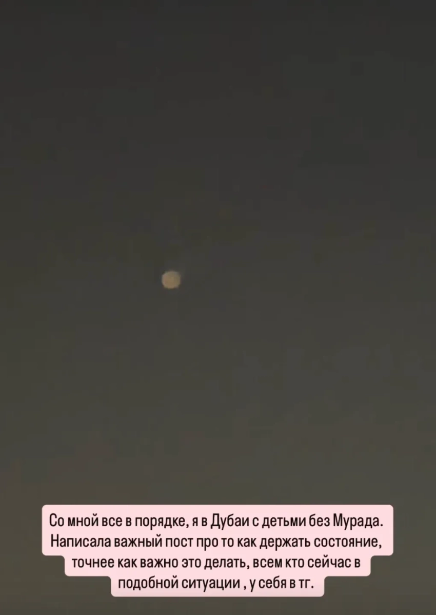 ПашуПлемянница миллиардера Араза Агаларова и двоюродная сестра певца Эмина Сабина Агаларова рассказала, что один из взрывов был рядом с её домом. Блогер Наталья Османн тоже находится в Дубае — с детьми и без супруга Мурада. Она назвала прошедшую ночь "сложной" и слышала "много взрывов".