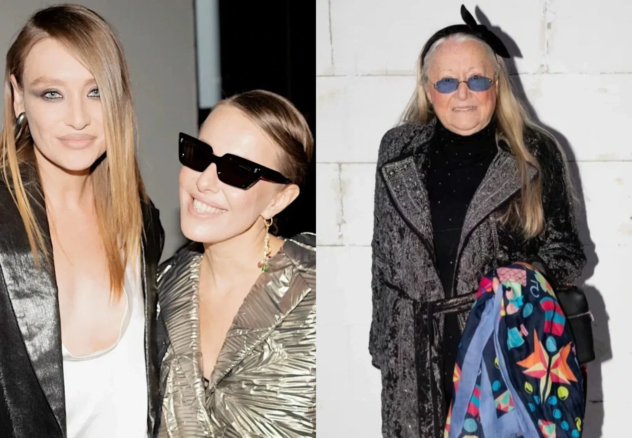 44-летняя Ксения Собчак пришла в металлизированном тренче и контрастных перчатках, а 37-летняя Мария Миногарова надела костюм из мужской коллекции Viva Vox, дополнив его массивными перчатками. 34-летняя актриса Юлия Хлынина позировала в чёрном платье с декольте и разрезом.